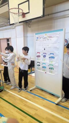 約2か月にわたる自動車づくりの単元の集大成として、商談体験会を行いました。