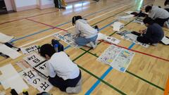 静かな体育館の中で、集中して筆を運ぶ姿から、新しい一年への思いや成長への意欲が感じられる時間となりました。