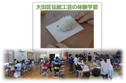 4年生が大田区伝統工芸発展の会の方々を講師にお招きして、氷彫刻、木工、和竿、うるし工芸、布象がんについて学習しました。