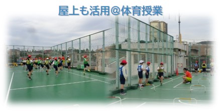 改築工事で校庭も狭いため、屋上も活用して体育の授業を行っています。