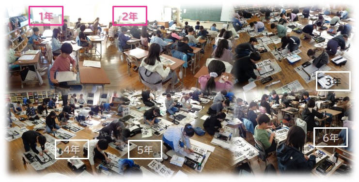 1、2年生は硬筆、3~6年生は毛筆で、お手本をよく見ながら集中して取り組みました。