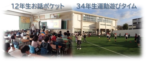 この日の朝の活動は、12年生はお話ポケットで読み聞かせ、34年生が運動遊びタイムで縄跳びをしました。