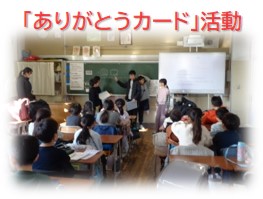 楽しく遊んだ後、5年生が代表で6年生に班のメンバーからのお礼のメッセージカードを送りました。