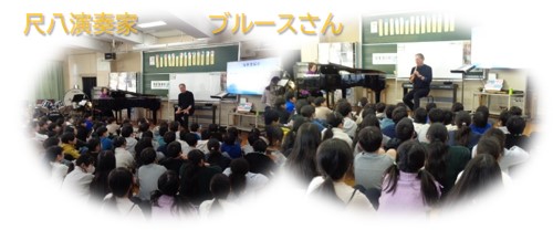今年もゲストティーチャーとして尺八演奏家のブルースさんをお招きして、5年生が尺八の授業を体験しました。