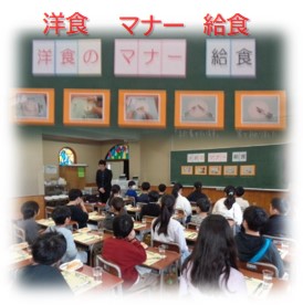 2月5日から西洋の伝統的な食文化である洋食のよさやマナーを知るねらいで、5年生が洋食の特別メニューの給食をいただきました。