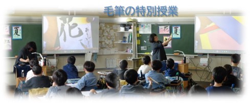 3年生が書家の先生を招いて、毛筆の特別授業をしました。