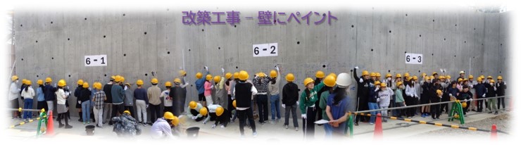 改築工事中の卒業にあたり、これまでお世話になった校舎校庭への感謝の気持ちと、一人一人の想いを東側の擁壁にペイントするイベントを行いました。