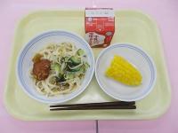 冷やしうどん 鶏天 とうもろこし 牛乳