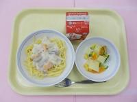 スパゲティクリームソース ポテトフレンチサラダ 牛乳