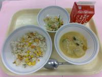 コーンピラフ 秋野菜のクリーム煮 ツナ入りサラダ 牛乳
