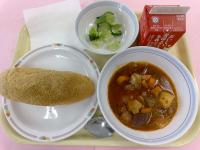 きなこ揚げパン ボルシチ グリーンサラダ 牛乳
