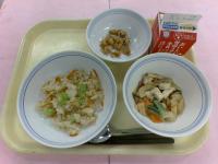 切干ごはん 五目豆腐 じゃこ大豆揚げ 牛乳