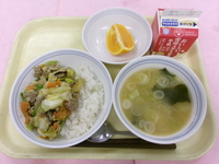 きじ焼き丼 沢煮汁 デコポン 牛乳