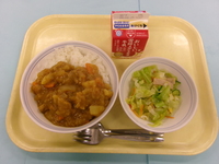 カレーうどん こぎつねサラダ 冬至団子 牛乳