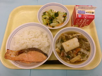 ごはん サケの塩こうじ焼き きりたんぽ汁 かいそうサラダ 牛乳