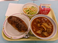ココア揚げパン ボルシチ シーザーサラダ 牛乳