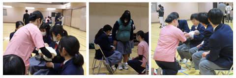 前半は、「いのちのバトン ~素晴らしい生命をいきる~」というタイトルで、講師の先生のお話を伺いました。後半は、グループに分かれ、赤ちゃん人形を抱っこしたり、妊婦体験をしたり、ライフプランの作成を行いました。