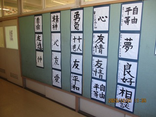 手本も見ずに書いた最初の『友情』と、指導が入り、今まで学習した原理・原則を思い出しながら意識して練習をして書いた『友情』では、これほど違うんだという字をたくさん見ることができました。