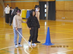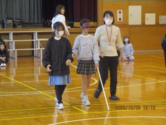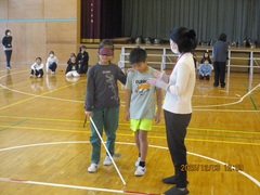 4年生はたくさんの福祉体験学習をしてきました。その最後にブラインドサッカーを体験しました。ブラインドサッカーとは、視覚障がい者向けに考案された5人制サッカーで、パラリンピックの正式種目となっています。フィールドプレイヤーはアイマスクを着用し、音の鳴るボールとガイドの声などを頼りにプレイをします。