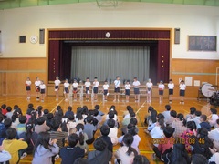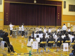 つばさ総合高校、出雲中学校、中萩中小学校、都南小学校、そして萩中小学校の5校が集まって、伝統の小中高音楽交流会が、萩中小体育館で開催されました。