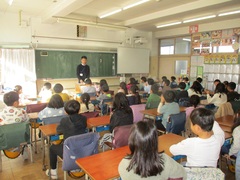 最後に2学期をもって萩中小を辞められる、S研専門員、牧瀬未慧先生からのお話がありました。牧瀬先生は、3学期から他の学校で勤務することになっています。今まで、本当にお世話になりました。