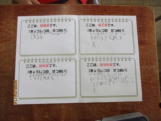 2年生は、生活科の学習で「学校案内の計画」を立てています。本日の2校時は、説明する教室の説明文を書きました。
