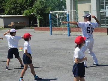 ヤクルト球団より、元選手の三輪さんが講師として来てくださり、投げ方教室を行いました。