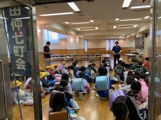 5時間目は、町会の方々においでいただき、町会別下校訓練です。自分の町会を知る、町会の人を知る、そして震災が起こった時に集まる「一時(いっとき)集合場所」を知るための活動です。羽田小学校は9つの町会の避難所になっています。避難所が開設されたら町会別に受付をしたり、体育館等のシートに分かれたりします。困ったときは、いざという時は、遠くの親戚よりも近くの人が頼りです。町会は助け合いの仕組みです。