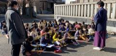 1月13日、生活科の学習で穴守稲荷神社へ探検に行きました。写真は、子どもたちが質問をし、神主である森下さんからお話を聞いてメモをとっている様子です。事前に考えた質問の中には、「神社には、なぜキツネの像があるのですか?」「お守りの中には、何が入っているのですか?」「一番楽しい仕事は何ですか?」などがありました。探検後のまとめでは、「初めて知ったことを家族に教えたい。」「また神社に行って、違う質問をしたい。」などの感想が挙がり、自分たちの住む町の良さを実感していました。「仕事」についても、関心をもって話を聞いていたため、将来につながる学習にもなったのではないかと感じています。