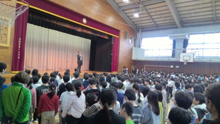 入学して2週間、1年生を迎える会が開かれました。1年生に楽しんでもらえるように計画代表委員会の児童を中心にジャンケンゲームやクイズを出しました。1年生からはお礼の歌が披露されました。19日からは1年生も校庭で遊び始めています。
