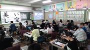 1月8日から3学期が始まりました。始業式の日に書き初めをしました。4年生は「美しい空」と書きました。みんなが集中して心をこめて書いた字はとても素敵です。「校内書き初め展」として各クラスの廊下に掲示しています。日本のお正月らしさを感じています。