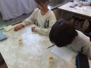 また、2月17日(木曜)に、他の学年の作品の鑑賞を行いました。友達の作品の良いところを、子供たちは真剣な表情で鑑賞カードに記入していました。カードの枠が足りないくらい一生懸命取り組みました。