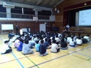 また、講師の久保田さんによる水産業についての講話も行われました。一度社会科で学習しましたが、授業では扱わないことや魚の漢字クイズ等、子供たちは楽しみながら真剣な態度で話を聞いていました。