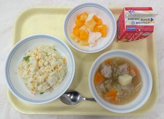 たまごチャーハン わかめスープ きなこ豆 牛乳