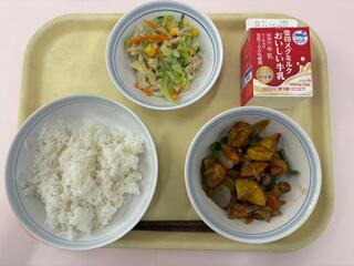 ごはん 鶏肉と根菜の甘酢あん ツナサラダ 牛乳