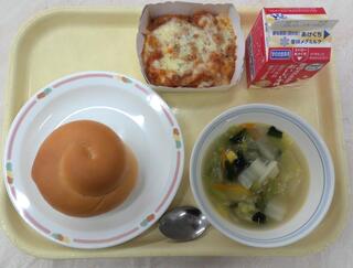 ミルクパン じゃがいものミートグラタン 野菜スープ 牛乳