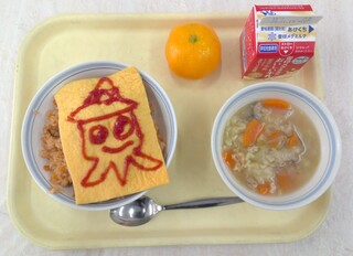 セルフオムライス ABCマカロニスープ みかん 牛乳