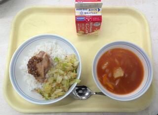 鶏ちゃん丼 けんちん汁 りんご 牛乳