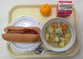 ホットドッグ ポトフ みかん 牛乳
