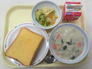 ごまビスキュイパン ツナサラダ とり肉のクリームスープ 牛乳