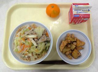 長崎ちゃんぽん 大学芋 みかん 牛乳