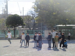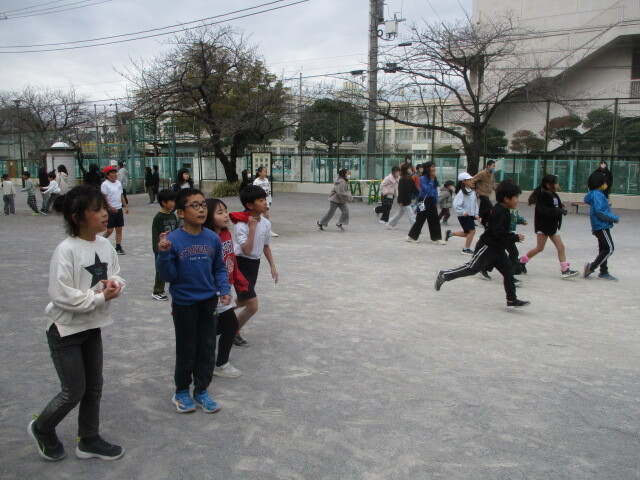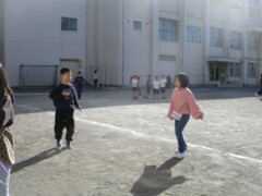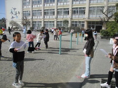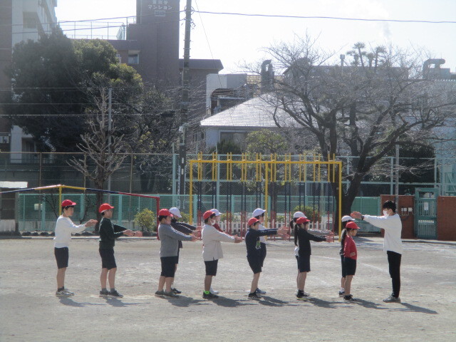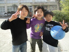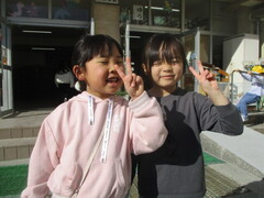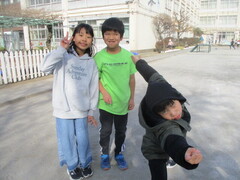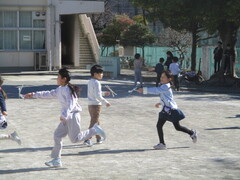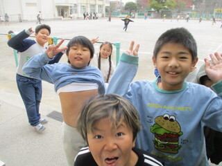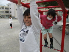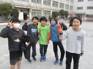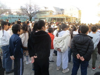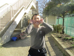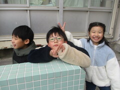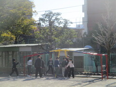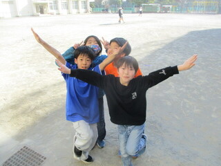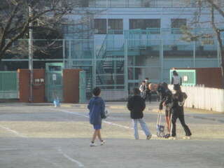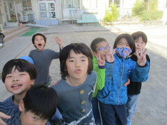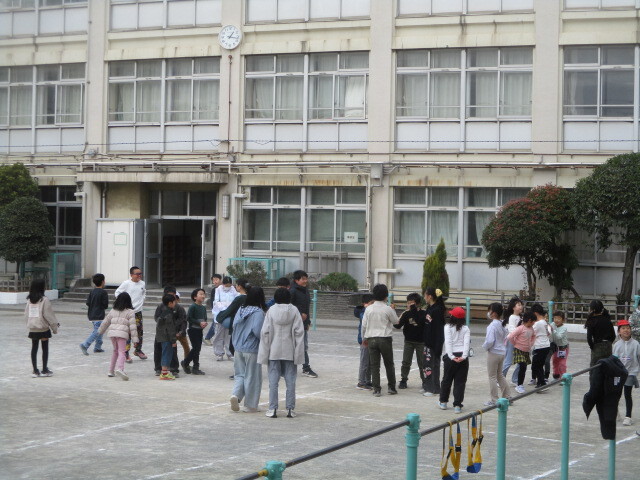 中休みになりました。外は陽光が降り注ぎ、ひなたでは寒さを感じなくなりました。遊びに出てきたこどもたちの明るい表情がいっぱいでした。