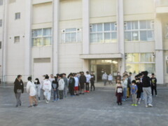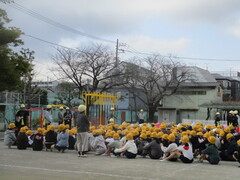 避難訓練の合格点は「100点」のみ。これまでその数値を目標に取り組んできており、こどもたちは認識できています。集合後の態度はいつも良好であり、「合格です!!!」と太鼓判を押してあげたい気にさせられます。今回も立派でした。