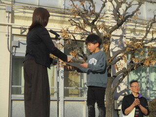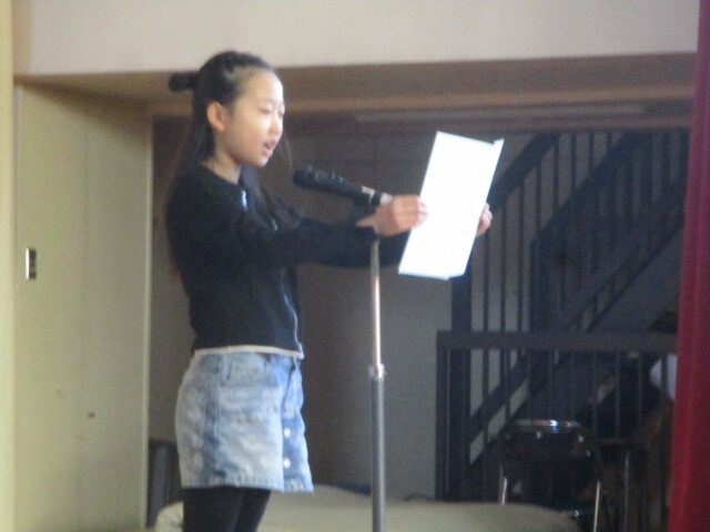 児童代表の言葉は、4年生が担当しました。2学期の振り返り、新年を迎えての抱負が述べられました。もう「5年生進級」を強く意識していることが、伝わってきました。