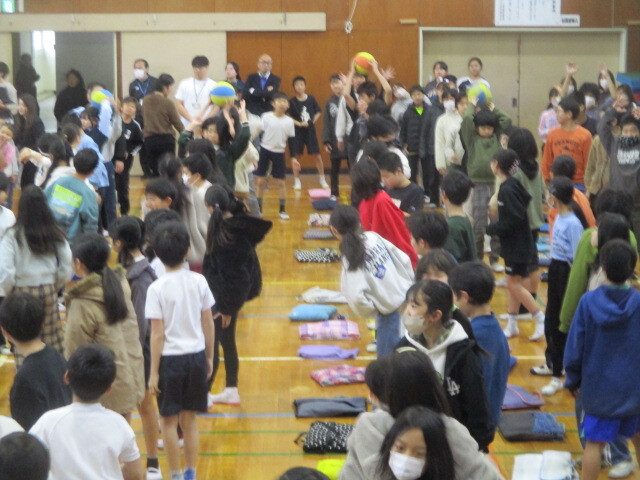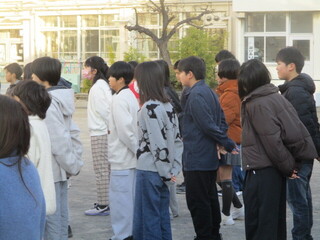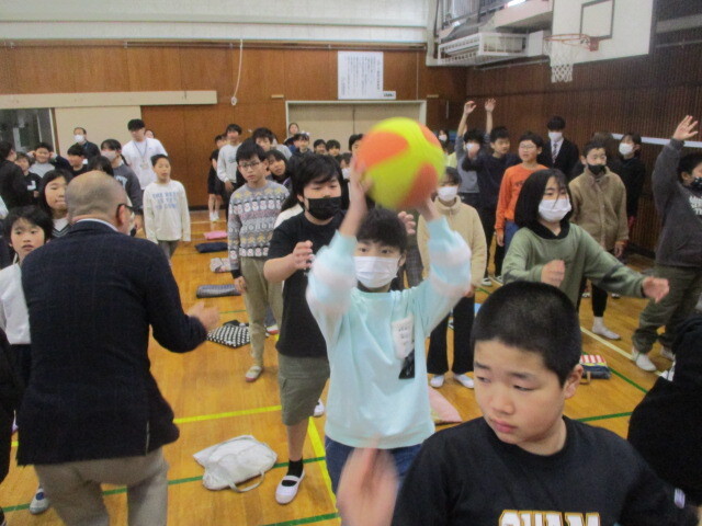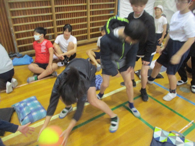 ボール送りを楽しみました。クラス対抗戦ではなく、全校でタイムの短縮を目指した点がよかったです。ゆっくり目だった1回目の記録より、30秒近い記録更新を成し遂げました!