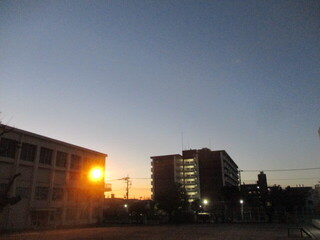 いつもと変わらぬ夜明けの空の色でした。しかし、本日は史上初の気象異変が起こるかもしれません。お天気マニアにとっては、興味深い局面です。学校には直接、関係ありませんが、こどもたちにも黄色く染まった空を体験させたい思いはあります。さて、結果はいかに?