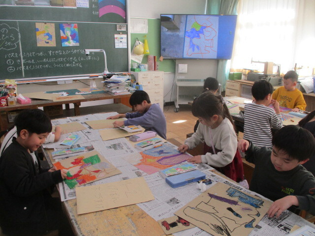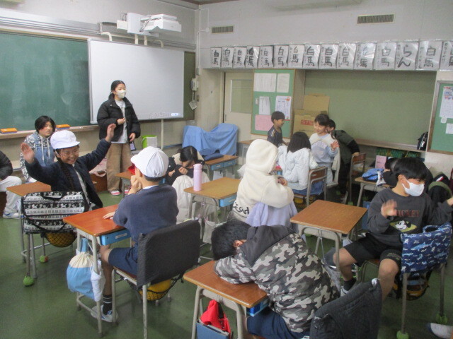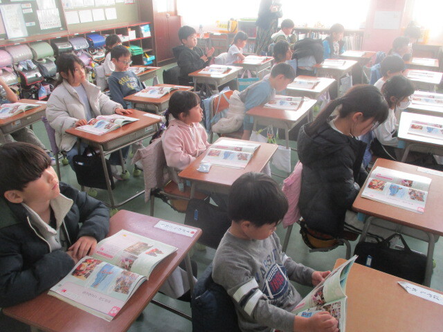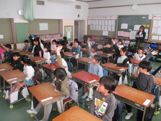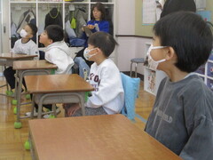 教室へと戻ります。画像は、1年生と2年生の様子です。