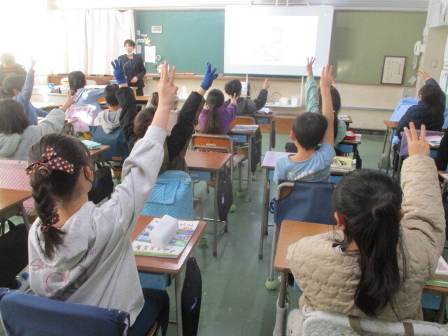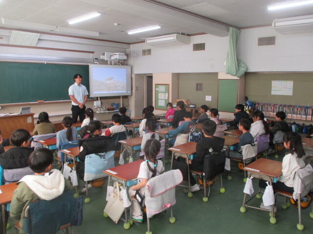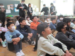 大田区が誇る「ものづくり」について、クイズを取り入れながら、校長先生から紹介されました。東糀谷地域には小規模な工場が数多く点在しており、そこで作られている部品の数々を知ったこどもたちには、驚きもあったようです。