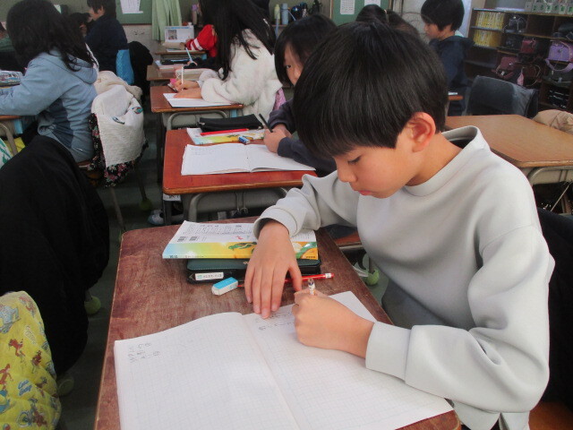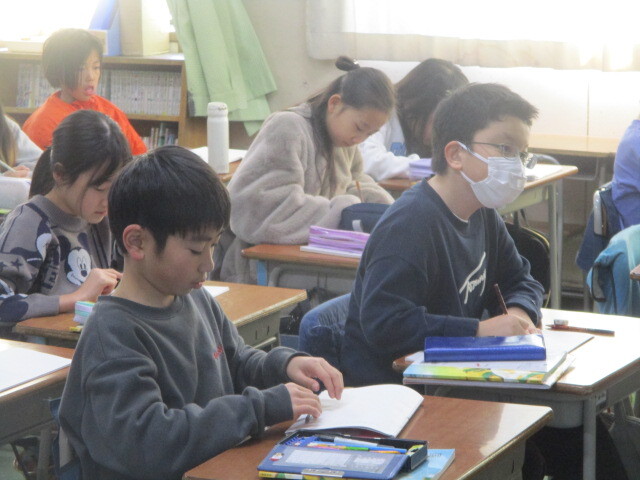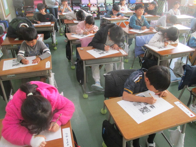 本日は全学年、書き初めを行う時間を設定しています。心静かに、落ち着いて運筆する時間になるといいです。