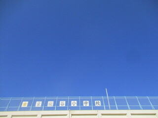 昼休みです。見上げた空はクリアなブルー! まだ黄色い砂は到達せずに済んでいる模様です。